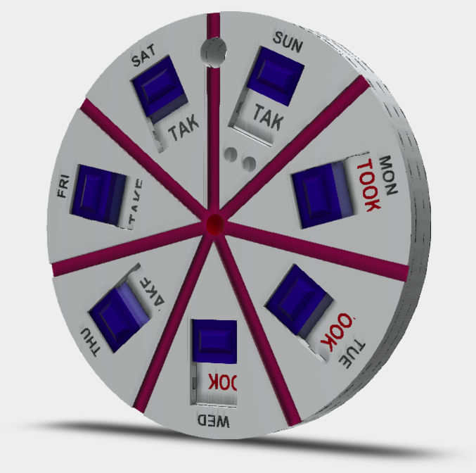 Just flip its daily tab from the TAKE to the TOOK position each day you take your medication.